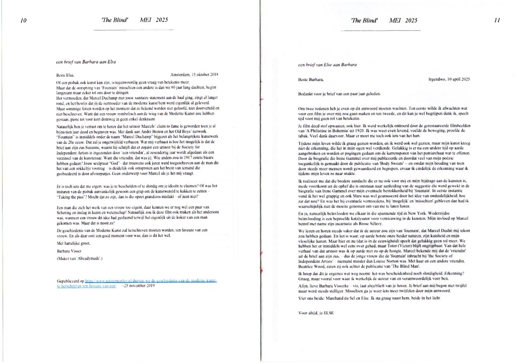 Barbara Visser gaf aan geen tijd te hebben maar wel de noodzaak te voelen om haar verblinding, die het gevolg was van de diep gevoelde wens dat het waar zou zijn, in perspectief te zetten met een nieuwe brief.