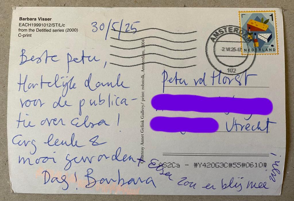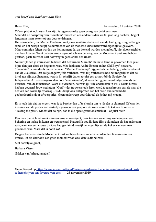 Hiernaast (hierboven op je telefoon) het prachtig geformuleerde antwoord van Elsa von Freytag – Loringhoven (Else voor vrienden).